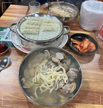 신선한 바지락으로 만든 해물 칼국수는 하루에 200그릇 한정판매 합니다. 오후 늦게 방문하실 분은 미리 알아보고 방문하시는걸 추천드립니다.