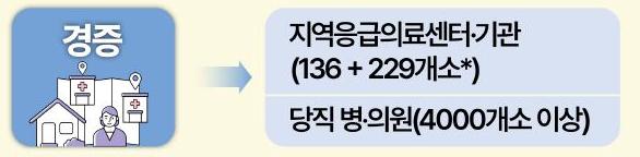- 경증 환자: 지역 응급의료기관(136개소) 또는 당직 병·의원(4,000개소 이상)