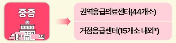 - 중증 환자: 권역응급의료센터(44개소) 또는 거점응급의료센터(15개소)