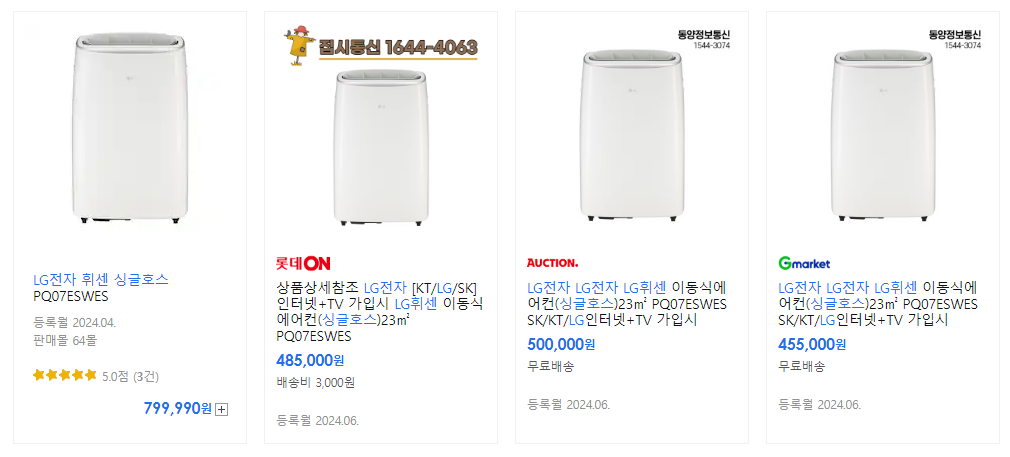 1. LG 휘센 이동식 에어컨 싱글호스 PQ07ESWES
